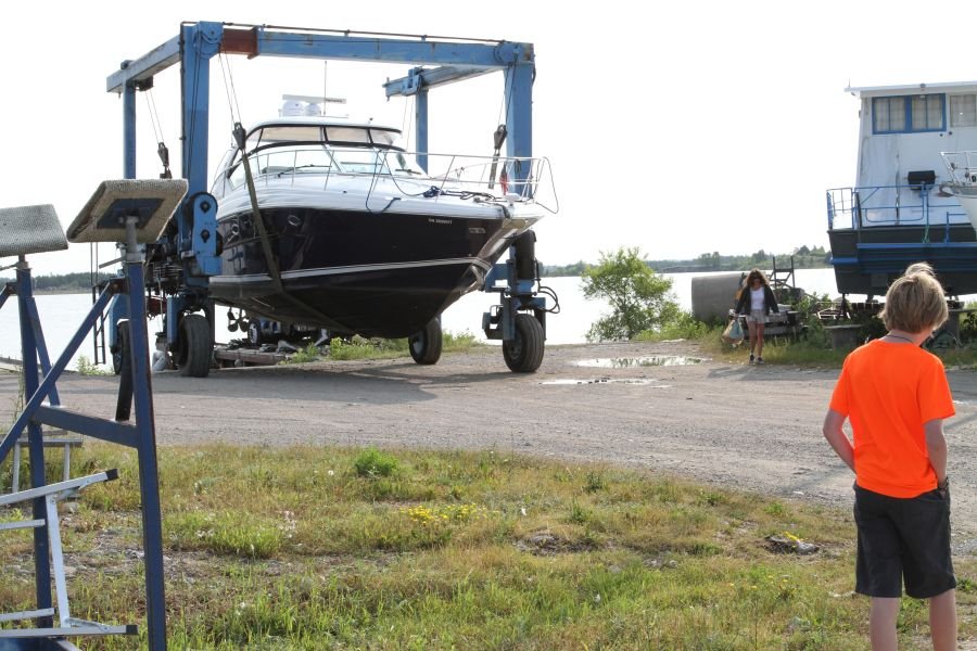 If you don’t take the bad with the good it is hard to know the good. That is our motto today. We are not loving the circumstances but given how many miles we have put on Conductance over the years this is our first mistake. Our vacation plans are not ruined, nor are our plans derailed. Our plans have merely changed. In a boater’s life you can’t take your set plans too seriously. A boater’s life is always in flux, not much different from our real life away from the boat. So that being said, Conductance sits on the hard awaiting 2 new props with an engine that has slightly been moved. A possible alignment is in order. We won’t know if the new props will fix any additional damage that we can’t see until she is run in the open water. We ordered the props from Florida and they are making their way north as we speak. Conductance will have to sit on the hard for a week.
