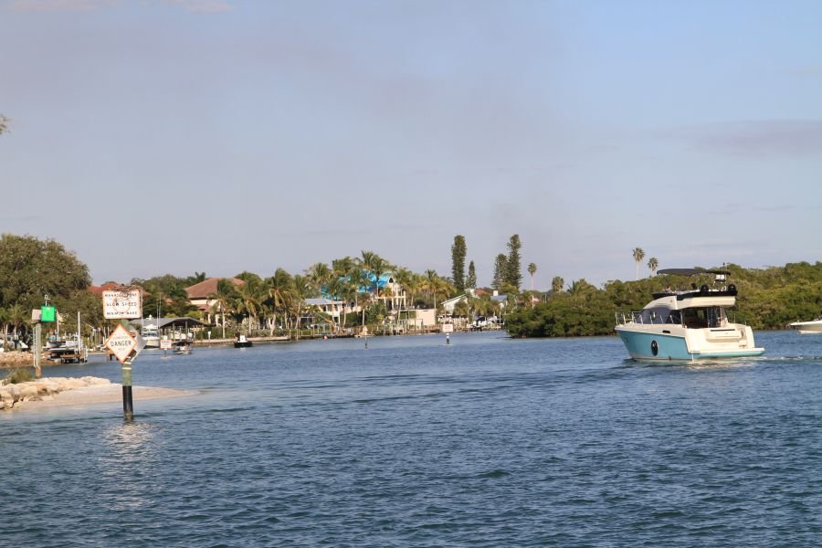 As we headed back to the boat we talked about the day. We decided to head out to The Gulf to make up time. Deciding to not do the ICW was a wise choice for us mainly due to our time constraints. We took a quick cruise through the ICW for about 10 minutes just to see the sites then headed to The Gulf. From there we thought maybe to make a short day and stay at Sarasota. The water was smooth with less than 1 foot waves. We were able to travel at 28 mph and made Sarasota in a couple hours. We thought we should push on and “make up a day” and stay in Venice. It was an easy channel to get into with Crow’s Nest being right at the mouth of the channel. It is also an easy diesel top up and slip with a large dock. We had 3 other larger boats than us on it by nightfall.