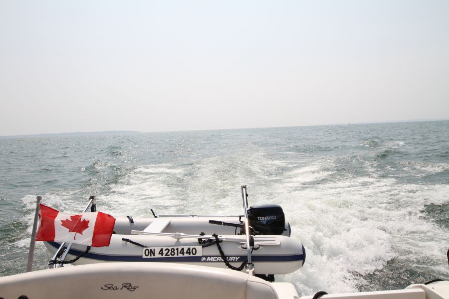 On July 3rd, we took out our friends from squash, Matt, Lesley and family. It was quite cool and rainy. The sun made a few appearances but it was still sweaters to watch the sunset fall over the brim of Niagara Falls. We traveled around Navy Island and saw a deer drinking along the shore. Dinner was a BBQ which the kids thought was something just to have that on board a boat. Great memories made!